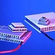 Micro modules are devices that have semiconductor element footprints of less than 1.0mm square, allowing higher numbers of couples for a given size module. These modules are metallized (but not solder tinned) on both hot and cold surfaces and they are suitable for mounting with solder or via compression (compression is recommended). TE Technology's proprietary "potting" for moisture protection and ruggedizing is available as an option. These modules are rated for use up to 80°C.