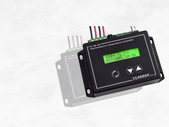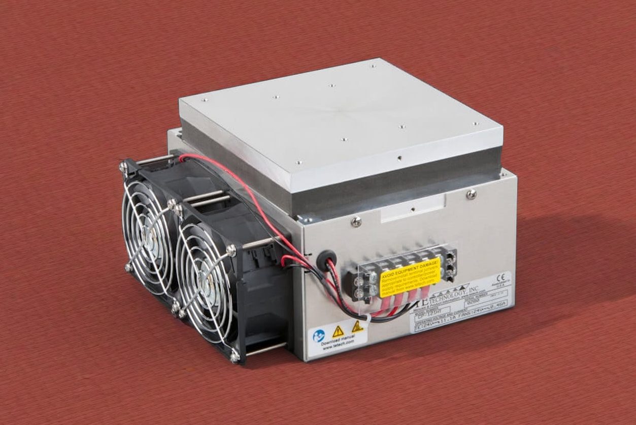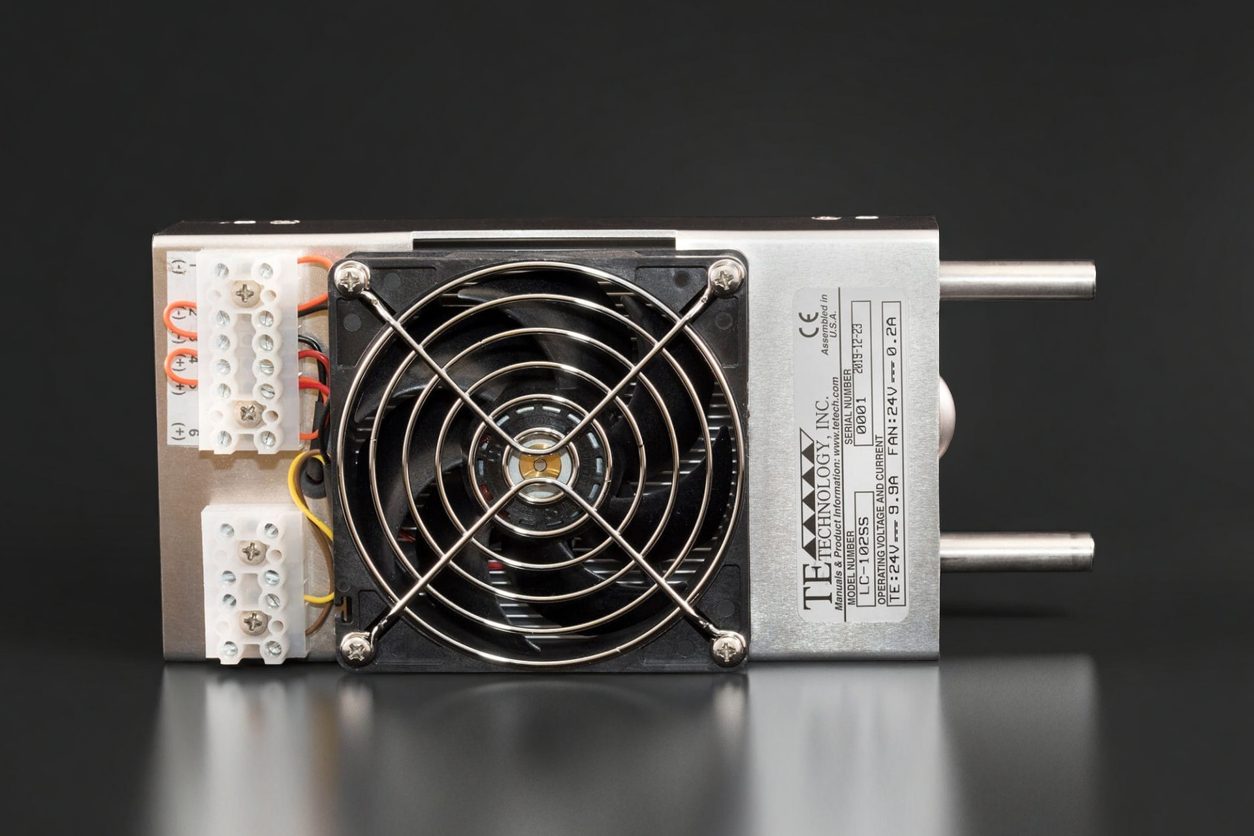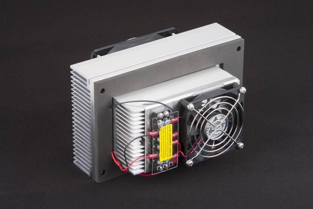 Features: Powered by 12 VDC, has a low power draw, and maintains an enclosure’s NEMA 4 rating. Low profile internal fan blows air into center of cabinet for directed cooling. The low power consumption makes this cooler compatible with all of our temperature controllers. Can be used for heating and cooling. Can be customized for production-sized orders.