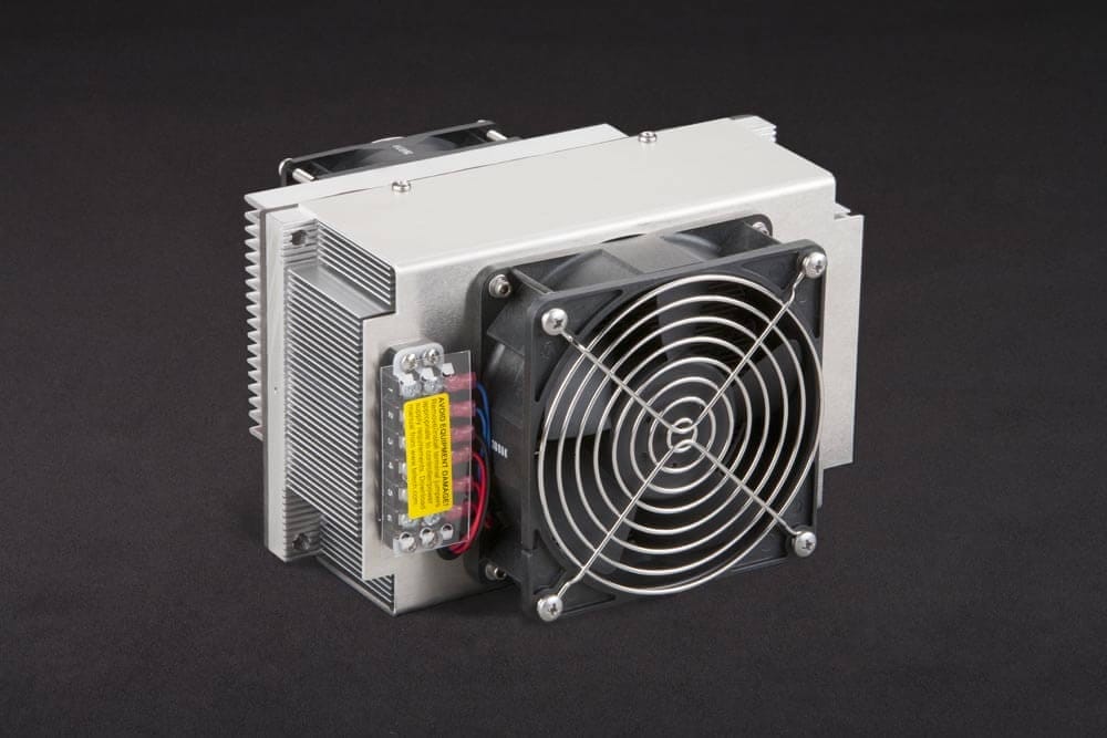 Features: This cooler is powered by 24 VDC, has a NEMA 12 rating, and can be customized to achieve NEMA 4. It uses two large thermoelectric modules and a high-density bonded-fin heat sink that provide excellent performance in a compact footprint. Can be used for heating and cooling. It is compatible with the TC-720 series, TC-36-25 series, and TC-48-20 series temperature controllers. Labeled wiring cables are included free of charge when purchasing interconnected standard products on the same order (thermoelectric cooling assembly or module, temperature controller and/or a power supply). The number of cables included (1-3 pairs) will depend on the number of components being interconnected.
