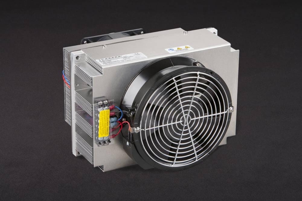 Features: Six thermoelectric modules, extender blocks, and a bonded-fin heat sink and cold sink make this cooler very efficient and compact for its capacity. The bonded-fin cold sink keeps the temperature difference between the enclosure’s air and the cold sink to a minimum. This is especially useful for cooling to temperatures near 0 °C when a less efficient cold sink would allow condensation to freeze on it and restrict airflow. This cooler is powered by 24 VDC, is rated to NEMA 12, and can be customized to achieve NEMA 4. Can be used for heating and cooling. It is compatible with theTC-720 series, TC-36-25 series, and TC-48-20 series temperature controllers.