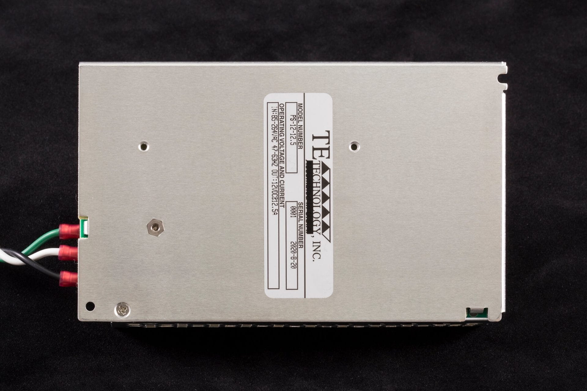 A 12 volt DC, fixed-voltage power supply capable of delivering up to 12.5 amps of current. The input voltage is auto-ranging. One North-American standard power cord is supplied attached to the power supply, and power cords for the UK, EU, and Italy can be purchased separately. Labeled wiring cables are included free of charge when purchasing interconnected standard products on the same order (thermoelectric cooling assembly or module, temperature controller and/or a power supply). The number of cables included (1-3 pairs) will depend on the number of components being interconnected.
